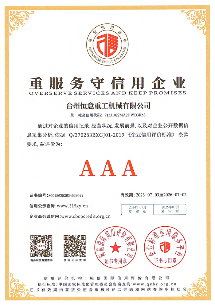 重服务守信用企业 3A级